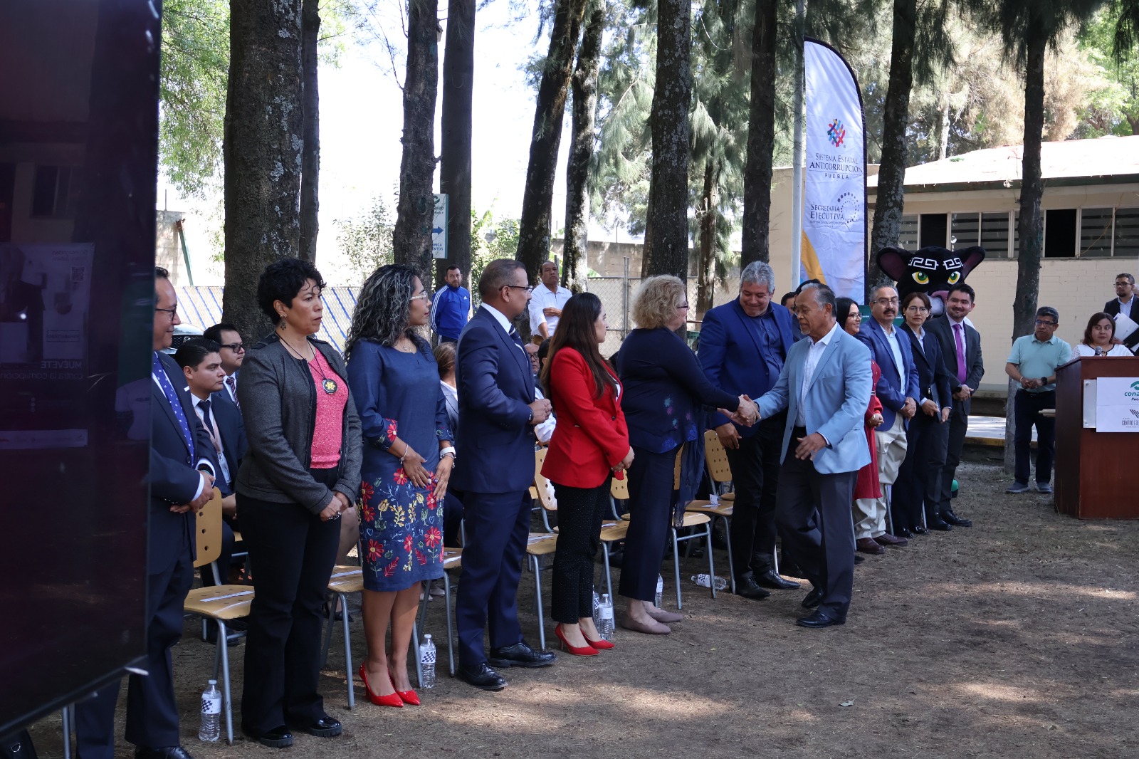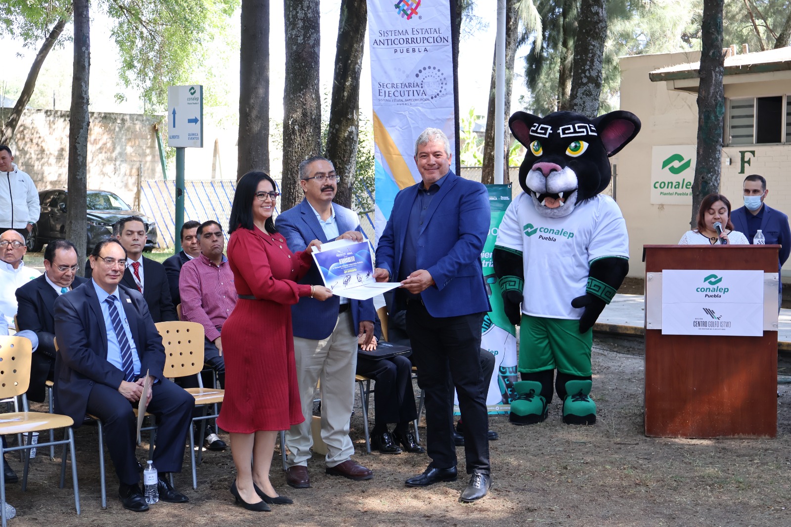 El acto contó con la participación de la presidenta del Comité Coordinador del SEA y del Comité Estatal de Participación Ciudadana, Maritza Méndez Cabrera; el magistrado presidente de la Sala Especializada en materia de Responsabilidades Administrativas del Tribunal de Justicia Administrativa, Raúl Palomares Palomino; las secretarias técnica la Secretaría Ejecutiva de Veracruz, Adriana Paola Linares Capitanachi, de Tlaxcala, Yaneli del Razo Enriquez, de Puebla Georgina Cesín Andrade y el encargado de despacho de la Secretaría Técnica de Hidalgo, Ángel González Oscura; el director del CONALEP Plantel 2, Norberto Merardo Valenzuela Valdivia, los integrantes del Comité Estatal de Participación Ciudadana, Sergio Díaz Sáenz, Víctor Manuel Sánchez Ruiz, Laura Elisa Morales Villagrán y Cecilia Huchin Mora; el auditor especial de Tecnologías de la Información y Mejora en la Gestión de la Auditoría Superior del Estado, Gustavo Jiménez Pérez; la titular del Órgano Interno de Control del Consejo de la Judicatura del Poder Judicial del estado, Isadora Rubí Joven; la contralora municipal de la Ciudad de Puebla, Dulce Lilia Rivera Aranda; la ministerio público adscrita a la Fiscalía Especializada de Combate a la Corrupción, Lizeth Arroyo Soriano; así como, la coordinadora General de Contraloría Social, Participación y Evaluación de la Secretaría de Anticorrupción y Buen Gobierno, Alba Viveros Ramiro.